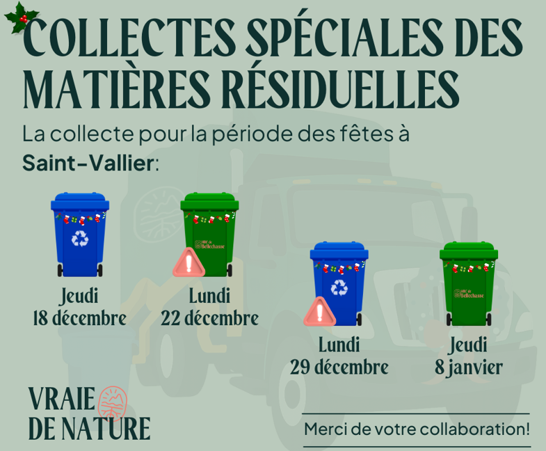 Veuillez prendre note qu'il n'y aura plus de collectes doubles pour l'année 2021 et ce suite à la majorité des municipalités ayant renoncé aux collectes supplémentaires des déchets sans qu'il n'y ait d'impacts négatifs importants sur leur territoire.